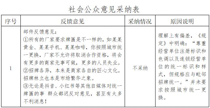 2025年3月14日至2025年4月14日,白山市城市管理行政执法局通过市政府门户网站对《白山市(主城区)城市户外广告和招牌设施设置规定(试行)》(征求意见稿)向社会公开征求意见。在征集期内收到邮件反馈1条、电话反馈0条、信函反馈0条。对邮件反馈,经认真分析研究,不予采纳。特将此情况向社会公告,感谢社会各界对白山城市管理工作的关注和支持!
