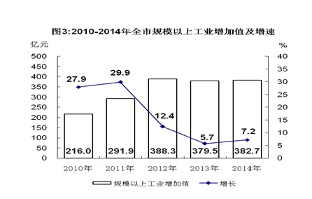 2014年,面对复杂严峻的国内外经济形势和艰巨而繁重的发展改革任务,市委、市政府带领全市人民,以转型发展为主线,以富民强市为目标,坚持稳中求进,锐意改革创新,结构调整不断优化,经济总量保持增长,民生事业继续改善,全市经济社会实现了新常态下持续稳步发展。