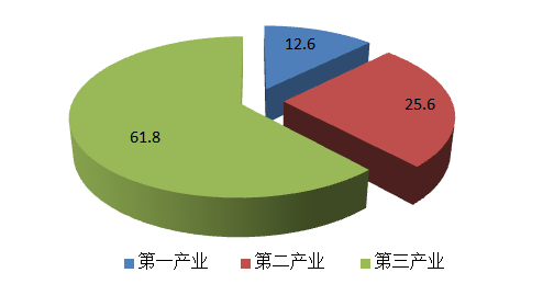 初步核算,全年实现地区生产总值509.42亿元,按可比价计算,比上年增长0.1%。其中,第一产业增加值64.21亿元,增长3.5%;第二产业增加值130.53亿元,下降3.8%;第三产业增加值314.68亿元,增长1.1%。三次产业结构比重为12.6:25.6:61.8。