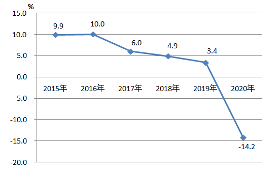 在限额以上单位商品零售额中,粮油、食品类零售额比上年下降50.9%,饮料类下降29.3%,烟酒类下降19.4%,服装、鞋帽、针纺织品类下降41.4%,化妆品类下降57.1%,金银珠宝类下降50.1%,日用品类下降50.5%,家用电器和音像器材类下降40.7%,中西药品类增长2.4%,文化办公用品类下降53.9%,通讯器材类增长5.1%,建筑及装潢材料类下降45.7%,石油及制品类下降26.6%,汽车类增长2.9%。