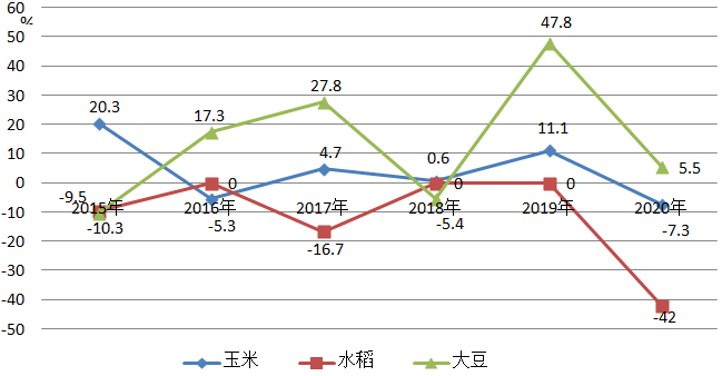 图3 2015-2020年主要粮食作物产量增速对比情况
